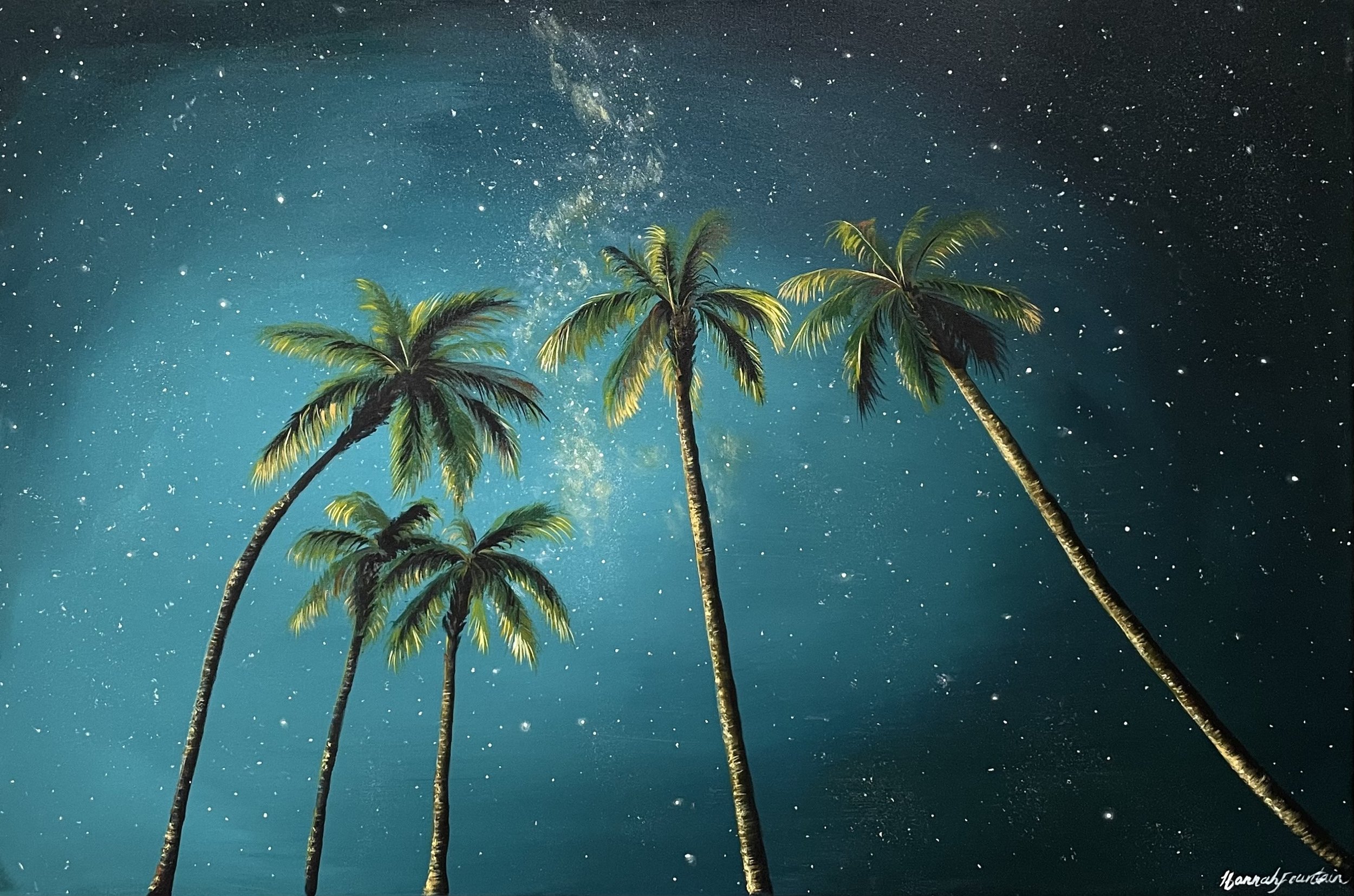 Night Palms.24x36 Acrylic On Canvas Original Painting View from below the Palms, looking up at a night sky